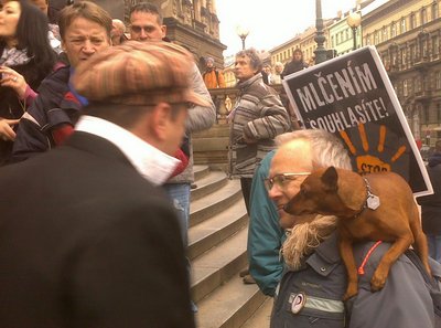 „Nemůžete se sem dostat, policie neuzavřela magistrálu!“ hlásá Zdeněk Ponert ve chvíli, kdy se bez problémů přesouváme ke schodům Národního muzea, ze kterých řeční. Později policie skutečně magistrálu uzavírá a odklání provoz. V jedné chvíli se do Ponerta se slovy „Sabotujete demonstraci hnutí Stop vládě,“ opírá člověk s psíkem na rameni a logy České pirátské strany. Na zádech nese transparent „Mlčením souhlasíte.“