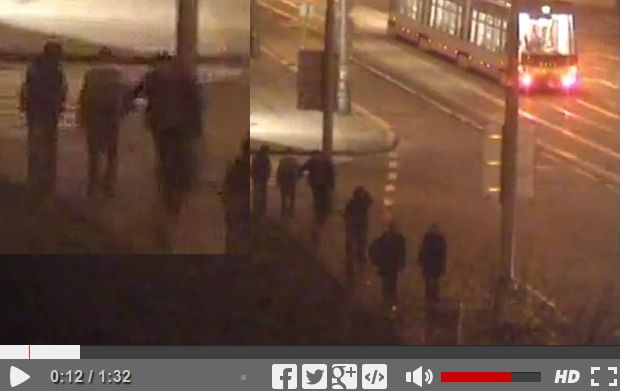 – v čase 0:12 se míjí policajt s dvojicí mladíků a z nějakého důvodu do jednoho z nich strčí pravou rukou. Zda se jedná o reakci na nějaké verbální poznámky nebo nějakou mladíkovu akci, kterou mohl vidět jen policajt se psem, nebo o přímou agresi policajta, už se patrně nikdo nedozví. Nicméně i po tomto „štulci“ jdou oba mladíci ještě chvíli svou cestou.