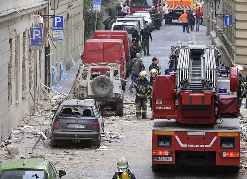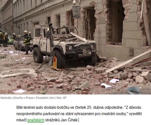Při pohledu na vyplynovanej domek vás napadne, že má skutečně nadstandardní fízlovací výbavu. Celkem jsem napočítal tři kamery, přičemž dvě jsou toho typu, který často zdobí policejní objekty. Jak jsem vyrozuměl, byly tam nějaké kanceláře. Dnes jsme také mohli absolvovat virtuální procházku po zborceném interiéru a mně tam něco chybí. Představil jsem si, jak by to asi vypadalo, kdyby vyletěla do luftu moje kancelář. Všude by se válely počítače a monitory a papíry a pořadače a takové věci, které jsou v kanclech běžně. Jako by tam někdo přes noc uklidil…