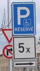 1. Jen takové dopravní zařízení je dopravní značkou, které odpovídá vyobrazení ve Vyhlášce. Vyhláška nestanoví možnost kombinovat značky IP 11a-g s údajem o tom, pro koho je parkovací místo rezervované, tedy například se symbolem osoby na vozíku. V tom případě je nutné použít značku IP 12 „Vyhrazené parkoviště“.