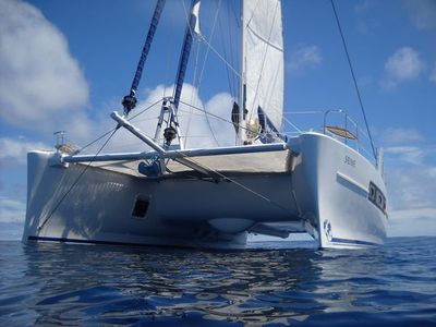 Celková délka lodi – tedy včetně bowspritu (čelenu) je přes 15 m, šířka 7,50. Skrz oba trupy se po stranách do vody spouštějí tzv. daggerboardy, kýlové ploutve sloužící zjednodušeně řečeno ke stabilizaci lodi. Spouští se téměř vždy jen závětrný board, přičemž v návodu k plavidlu je obsažena podrobná tabulka pro nastavování boardů. Ponor se tak díky variabilnímu uspořádání pohybuje od 90 cm do 2,5 m podle vytažení/zatažení boardů. Povalujeme-li se na přídi v síti mezi plováky, případně na vyhlídkové stoličce na přídi, máme báječný výhled na více než 21 m vysoký stěžeň nýtovaný z dvou kusů a vynikající romantickým záklonem a až dramatickým prohnutím, které je zespodu zvláště patrné.
