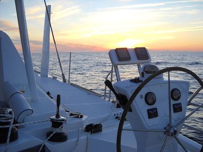 V noci je možno osvětlení přístrojů u kormidla tlumit až téměř k nule, červeně svítící kompas přes poklop téměř neproblikne a příďová navigační světla se jen mírně odrážejí v nerezových trubkách příďového zábradlí, což se dá upravit lepicí páskou. Záďové světlo je na schůdcích nad motorovým prostorem na pravoboku a neruší téměř vůbec (na rozdíl od katamaránů Fountain-Pajot, kde záďové světlo na sloupku přístřešku osvětluje celý venkovní kokpit a ruší i u kormidla). Palubní světlo pak palubu opravdu osvítí jako na Spartě.