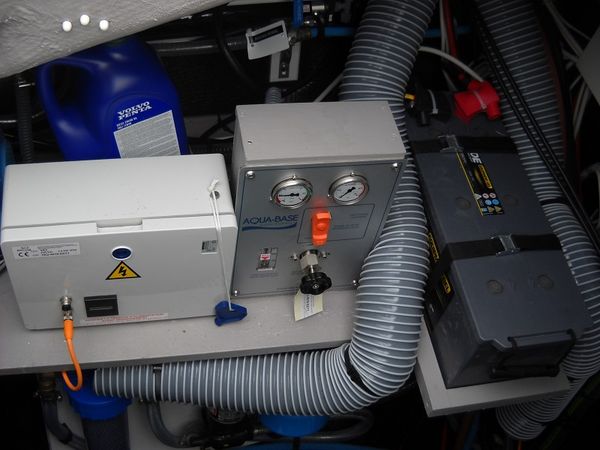 Další exotickou položkou ve výbavě lodi je osmotická odsolovací stanice s ionexovým filtrem údajně zvláštním způsobem vyladěným tak, aby výsledná voda nebyla zcela demineralizovaná. „Vodárnička“ bohužel měla příkon jako malý katr a tak fungovala jen po zapnutí malého generátoru Onan, vecpaného do motorového prostoru na levoboku. Ten bezchybně dobíjel energii, až do trucovitého konce uprostřed Atlantiku, kdy bídně zhynul na sesvačenost vrtulky vodního chlazení (při montáži nasazené obráceně). Poté co bylo nutno se několikrát přesvědčit, že loď tímto esenciálním náhradním prvkem opravdu vybavena není, vytvořil na lodi přítomný technický genius neuvěřitelně komplikovaný a mimozemsky vyhlížející bypass chladicího systému, a za pomoci záložní sprchové pumpy generátorek zprovoznil. Mrzoutskému firemnímu technikovi, který poté v maríně v Cul de Sac na lodi prováděl prohlídku a údržbu, tím připravil psychický šok a depresivní stav, který u něj přetrvával až do okamžiku náhlého čerpání z pivního fondu plavidla. Složitost fungování osmotického filtru v kombinaci s generátorem vynikla při zjištění nutnosti dodržovat různé termíny mezi jednotlivými výrobami vody, v určených intervalech provádět zvláštní údržbové operace osmotických membrán a jiné slasti, to vše podle manuálu výhradně ve francouzském jazyce. Na druhou stranu je potřeba přiznat, že PET láhev osmotické vody s panákem mořské a mírně vychlazená je nejlepším iontovým nealko občerstvením (připustíme-li vůbec ze zdravotních důvodů na moři konzumaci jiných než lihových nápojů). Bezuzdné sprchování po koupání v moři uprostřed Pacifiku je taktéž ryzím luxusem, který je překonán snad jen nutností počkat, aby sushi z uloveného tuňáka nebylo až moc čerstvé.