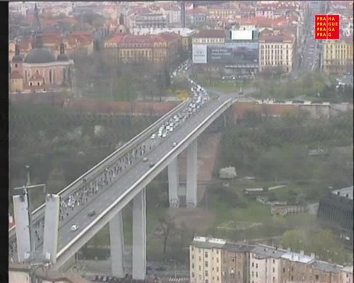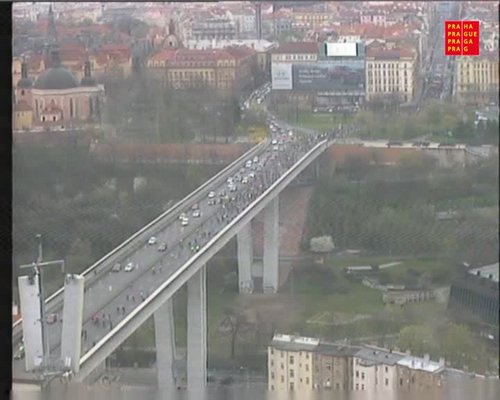 Letos jsem tedy využil techniku 21. století a cyklojízdu si dal on-line. První a poslední foto ukazují úroveň dopravy za sobotního odpoledne, před a po cykloakci. První fotka je v čase 15:58, poslední 16:44. Bohužel mi utekly snímky z příjezdu čela cyklojízdy, ale i tak si lze udělat poměrně slušnou představu počtu aut a časech, které tráví v koloně. Mezi záběry je prodleva 4 min. Cyklojízda jede Prahou přibližně dvě hodiny, asi 10km. Tak až Vám organizátoři zase budou vykládat, že to vlastně nikomu nevadí a řidiči Vás radostně zdraví, zkuste si představit, kolika lidí v autech, v MHD i pěších se ta malá projížďka dotkne. Už jen volba trasy svědčí o tom, že cílem je být vidět a blokovat dopravu co nejvíc (okolo Riegrových sadů, přes křižovatku „U Bulhara“, po magistrále okolo Národního muzea až na Nuselský most, otočka na Pankráci, přes Náměstí Míru, Vinohradskou a Olšanskou ulici na žižkovské nádraží)