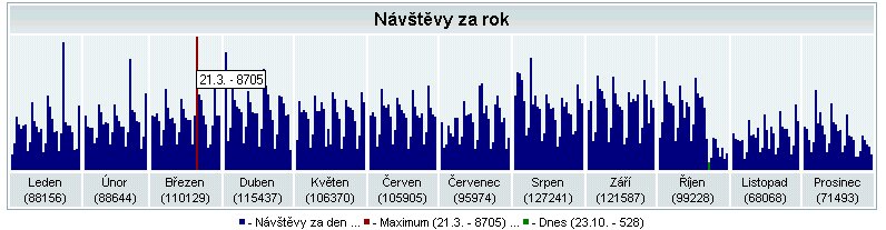 Průběh počtu návštěv podle Toplistu za posledních 12 měs.: