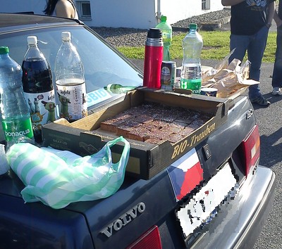 Účast v akci potvrdilo formou registrační SMS 83 posádek automobilů, 10 motocyklů a jedno letadlo. Nějaká další vozidla jela bez registrace, připojila se nebo odpojila během akce, takže jsme se každopádně dostali přes stovku účastníků. Složení automobilového parku bylo skutečně různorodé. Opticky nejvýraznější byl nepochybně ekologický youngtimer Oldsmobile.
