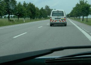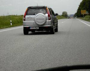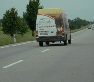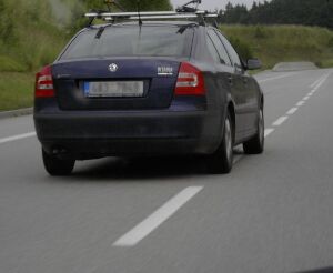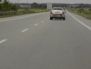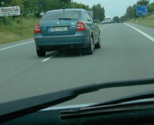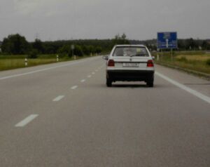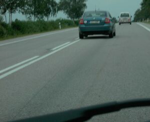V úseku České Budějovice – Veselí n./L. (výpadovka na Prahu) jsem jel rychlostí mezi 90 a 100 km/h. Vypadalo to asi takto (nyní již víte, že auto byl můj soukromý Favorit). Je jasné, že pan Klobouk by takhle nejezdil, pan Klobouk je mnohem více zklidněný a pochybuji, že pojede rychleji než 80km/h.