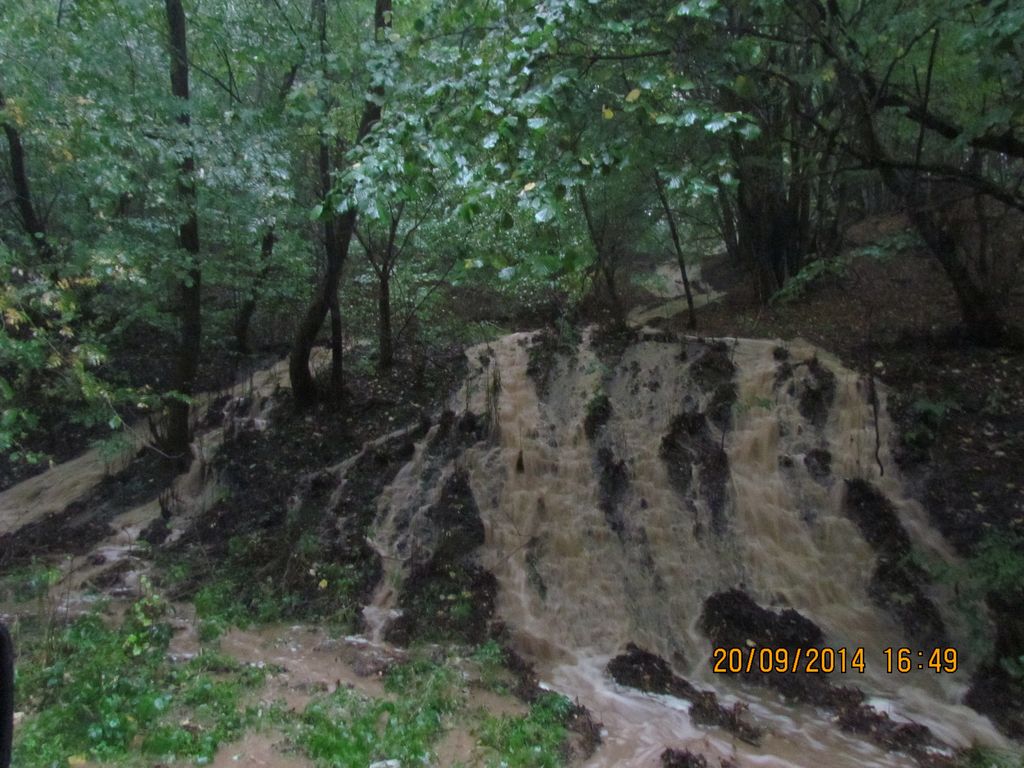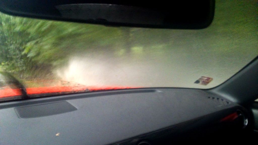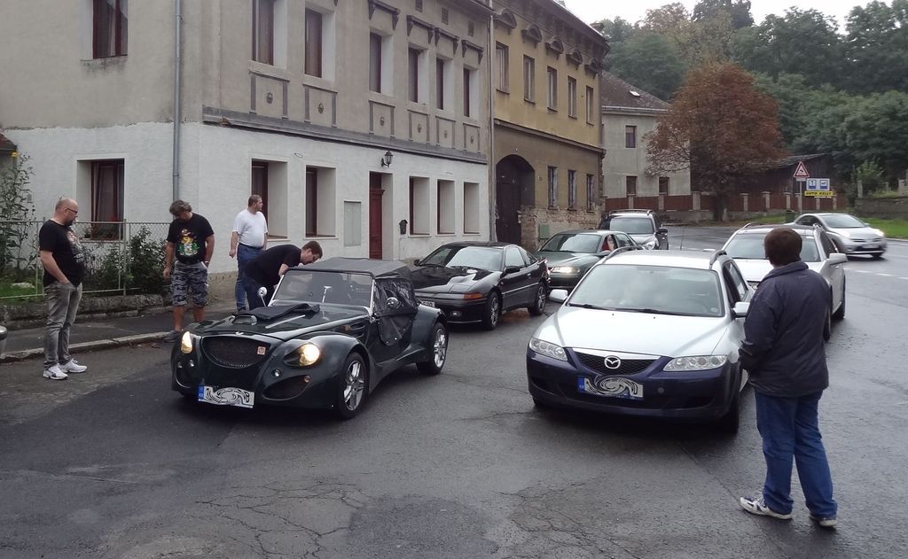 Bez komplikací nebyl ani průjezd samotné trasy, kdy účastníci projížděli středem lokální bouřky a jejich auta dostala pořádně zabrat. Z okolních strání tekla voda na silnici a stěrače to taky nebraly. Motorkáři asi trochu zmokli. Nicméně všichni anebo většina z nich překonala trasu během plánované hodiny a ukončovací vozidlo v podobě krásné červené GTV nehlásilo žádné mimořádnosti. Postrádal jsem pouze modrou Ibizu Cabrio, která byla k vidění již na DM2013 a která jela ještě za ukončovací GTV.