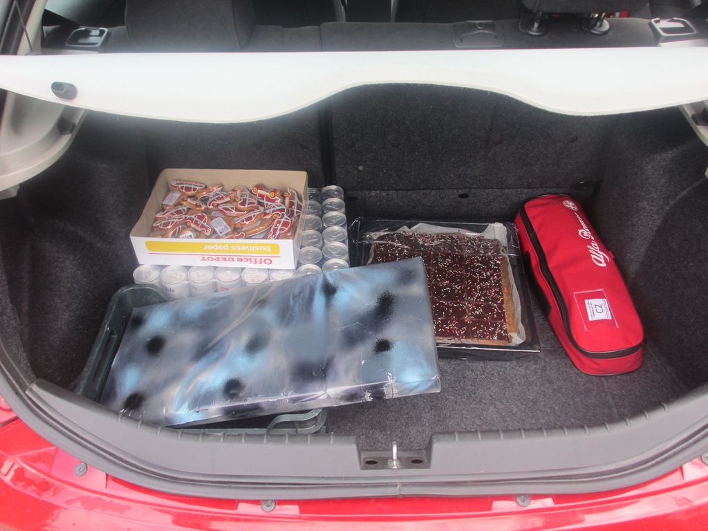 Popravdě řečeno měl jsem již několik dnů předtím informaci, že parkoviště bude možná uzavřeno, proto jsem v manuálu uvedl alternativní lokaci v podobě parkoviště u marketu Eva. Přítomnost policie a dokonce uzavření výjezdu z parkoviště páskou potvrdil jeden z předjezdců již ve 14 hodin. Zde mi bohužel nedošlo, že echt český market zavírá ve tři, takže jsme museli opustit i toto místo a divertovat na parkoviště náhradní u Tesca. Na obě opuštěná místa jsem přidělal improvizované cedule, které jsem ale později již na místě nenašel, asi je nějaký iniciativní domorodec odstranil. Nicméně i tak se podařilo dát dohromady menší kolonu a systém musel akceptovat další neúspěch.