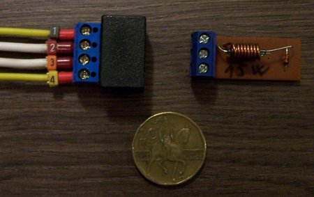 Palubní síť drtivé většiny silničních vozidel je stejnosměrná, nejčastěji s napětím 12V (starší vozidla 6V, nákladní pak 24V). Jak víme z fyziky pro základní školy, kolem každého vodiče, jímž protéká elektrický proud, vzniká magnetické pole, jehož intenzita je přímo úměrná velikosti proudu a tohoto prostého faktu využijeme. Jazýčkové relé, správněji jazýčkový kontakt (relé z něj vznikne teprve přidáním vnější cívky) je běžná, široce používaná a levná elektrotechnická součástka s různým použitím (např. v zabezpečovací technice, průmyslové automatizaci – snímání koncových poloh pístnic pneumatických válců atd.). Má tvar tenké skleněné trubičky, do níž jsou ze stran zataveny přívody přecházející uvnitř trubičky v kontakt, který sepne (případně rozepne, jak bude popsáno dále), pokud intenzita okolního magnetického pole překročí určitou hranici. Citlivost je udávána v bezrozměrné jednotce ampérzávity (Az), což je číslo říkající, kolik závitů musí mít cívka, v jejíž dutině je vložen jazýčkový kontakt a kterou protéká proud 1A, aby došlo k jeho sepnutí. Citlivost kontaktu má jistou toleranci, modelový budiž s krajními hodnotami dle katalogového listu výrobce 15-20Az; jinak řečeno k sepnutí kontaktu potřebujeme cívku s 15 až 20 závity při proudu 1A (nebo se 7,5 až 10 závity při proudu 2A atd. – prostá nepřímá úměra). Modelová hlídaná žárovka H4 má příkon 55W (potkávací vlákno), tedy při napětí 12V jí bude protékat proud asi 4,6A; skutečný proud při chodu motoru bude o něco vyšší (výstupní napětí regulátoru je u 12V soustavy až 14,4V), ale to můžeme zanedbat. Zkrátka: teče-li vláknem žárovky proud 4,6A nebo vyšší, pak svítí s pravděpodobností hraničící s jistotou tak jak má. Je-li proud nižší, pak má svit žárovky menší intenzitu (např. v důsledku špatného ukostření, zoxidovaných kontaktů, nízkého napětí palubní sítě..), neteče-li žádný, pak je obvod přerušen (přepálené vlákno, přepálená pojistka, vodič vypadlý ze svorky). Tyto abnormální situace chceme detekovat, ovšem k tomu potřebujeme rozpínací (či přepínací) jazýčkový kontakt, jinak by nám výstražná kontrolka svítila za stavu „vše OK“. Šlo by použít i spínací jazýčkový kontakt (který je mnohem dostupnější) a výstup následně invertovat klasickým relé s přepínacím či rozpínacím kontaktem – to je ale další součástka navíc zvětšující rozměry zařízení, náklady a riziko selhání. Výsledkem bádání byl prototyp pro ověření funkčnosti určený pro 15W žárovku brzdového světla (má jen tři svorky – jeden konec cívky je spojen s jedním fousem kontaktu), který je na obrázku níže vedle finálního výrobku a mince pro představu o rozměrech. Na dalším obrázku je principiální schéma zapojení.