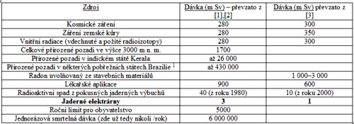 Z tabulky je zřejmé, že vliv jaderných elektráren na radiační zatížení člověka je velmi malý. Mnohem větší význam má to, žijeme-li v nížině nebo na horách, v dřevěném nebo kamenném domě, či jak často létáme letadlem.