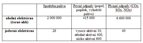 Část veřejnosti, i když akceptuje provoz jaderných elektráren, bývá přesto zneklidněna jadernými odpady. Je morální zanechat našim potomkům starost o potenciálně nebezpečné látky? Možná, že není, ale tím, že se z těchto důvodů zřekneme jaderné energetiky, své svědomí neočistíme. Nějak energii vyrábět musíme a každý způsob je zdrojem větší či menší zátěže pro životní prostředí. Lidstvo v každém případě odkáže svým potomkům vážné problémy: vyčerpané zásoby fosilních paliv, pozměněné složení zemské atmosféry, znečištění vod, nesmírné množství odpadu z průmyslu a domácností… Není vyloučeno, že současná činnost člověka povede v blízké době ke globální celoplanetární katastrofě. Jaderná energetika s nulovou emisí oxidu uhličitého a nepatrným objemem odpadů patří k nejčistším zdrojům elektrické energie. V tabulce 4 je srovnání odpadu z roční produkce uhelné a jaderné elektrárny o výkonu 1 000 MW ([3], všechny údaje jsou v tunách).