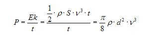 Pokud bychom dokázali využít všechnu kinetickou energii vzduchu, byl by výkon větru proudícího plochou S dán vztahem