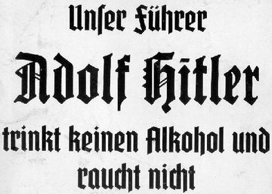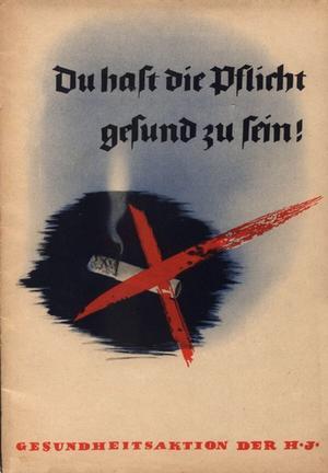 Národní socialisté se ve snaze o zdraví německého lidu zároveň pustili do kampaně proti alkoholismu a kouření. Na druhém Národním kongresu zabývajícím se veřejným zdravím, bojem proti alkoholu a drogám, byly formulovány čtyři požadavky (ochrana mládeže před alkoholem a tabákem, zákaz alkoholu při řízení, zvýšení produkce nealkoholických nápojů a konečně zrušení reklamy na tabák a alkohol). V novinách se objevily plagáty upozorňující na skutečnost, že vůdce nepije a nekouří (berlínský deník Auf der Wacht někdy v roce 1937). V roce 1939 celé vedení Hitlerjugend jako jeden muž přestalo kouřit: „Du hast die Pficht gesund zu sein!“ proklamovalo se na titulní stránce příručky pro Hitlerovu mládež (tvá povinnost je být zdráv).