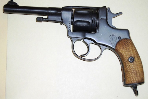 Těžko dnes zjistit, kterým z revolverů Nagant byl Tomek ozbrojen. Pokud šlo o slavný model 1895 nebo některou z jeho variant, není divu, že neměl vhodnou munici: pro něj je potřeba speciální střelivo 7,62×38 Nagant. Zajímavý je také tím, že jeho válec se před výstřelem posune dopředu, aby utěsnil mezeru mezi válcem a hlavní a zabránil úniku prachových plynů