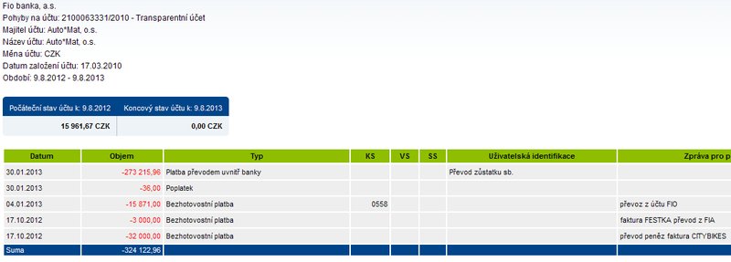 Co se však rozhodně nikam neodsouvalo, je dispozice s částkou 273 tisíc korun na transparentním účtu, které tam už od 30.1.2013 nejsou. Dárce, ať už je jím kdokoli a jeho vztah k A*M je jakýkoli by nepochybně očekával, že jednotlivé platby spojené s artefaktem (například sloup, palladium, transport, práce výtvarníka) budou hrazeny přímo z tohoto účtu tak, aby byly účel i výše jednotlivých plateb pro dárce zřejmé a dohledatelné. U sdružení personálně propojeného se sdružením Oživení, které bojuje za transparentnost a omezení korupce ve veřejném životě, to snad lze očekávat. Poté, kdy budou uhrazeny veškeré výdaje spojené s památníkem, by mělo následovat vyúčtování a rozhodnutí, jak naložit se zbylými prostředky, zda je například věnovat na nějaký veřejně prospěšný účel.