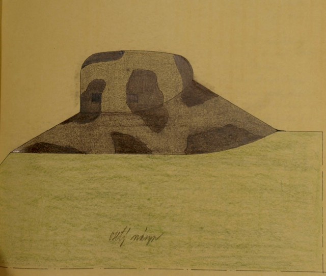 Tak podle dobových maskování se mělo skládat z nátěrů (zejména střílen a zvonů) a maskovacích sítí, na které dodnes upozrňují ty „prasečí ocásky“, co trčí z horních částí objektů. Dobový nákres je zde (jako obvykle se řešily vícepráce- nátěr zvonů nebyl ve smlouvě o dílo :-)