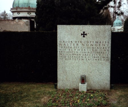 Někdy před čtyřmi lety napadlo jednoho kamaráda zkusit zjistit, kde přesně se Nowotny narodil. Jak známo, Gmünd a České Velenice byly před druhou světovou válkou prakticky jedno město. Bibliografický údaj, že se Nowotny narodil v Gmündu, může tedy znamenat, že se narodil ve Velenicích a že tudíž de facto, i když ne de iure, pochází z Čech! Už jeho jméno dost naznačuje. Znamenalo by to pak, že máme české stíhací eso s mnoha desítkami sestřelů. Bohužel se nám v Gmündu ani kdekoli jinde nepodařilo najít o Nowotném jakékoli zmínky. Jediné, na co jsme tehdy narazili, byl údaj, že střední školu navštěvoval v Českých Budějovicích, ale nedalo se to nijak ověřit. Následně jsme měli tu čest spatřit Nowotnyho čestný hrob. Není sice zakreslen v oficiálním průvodci po hřbitově, ale stačí se jen optat.