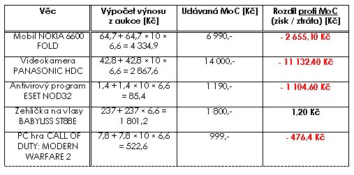 Nahlédněme nyní ještě do právě probíhajících aukcí. Jeden přiklad za všechny: Notebook HP PROBOOK 4510s je právě dražen v haléřové dražbě za 2 036,30 Kč. Tak tedy naposled: 2 036,3 + 2036,3 × 10 × 6,6 = 136 432,1 Kč. Za notebook s udávanou MoC 18 000 Kč. Ano, ano, jeden vohnoutek za něj zaplatí jen „dva tácy, voe“ plus nějakou tu almužničku za přihazování, ale ti ostatní ho více než 7,5 násobně dotují. A to se tady pořád bavíme o maloobchodních doporučených cenách. Jenže prodejce nakupuje za ceny velkoobchodní. Spočítejte si sami…