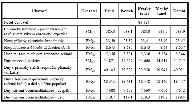 Pokud uvažujeme nejhorší možný případ, budou průměrné emise při nulové variantě o celých 0,7% vyšší než při povrchové variantě. Jinak řečeno, emise NOX se nesníží. Co třeba saze?