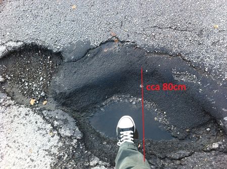 Váhal som či zavolať políciu, ale vravím si, niesom na vine, a niekto to zaplatiť musí- jedna guma bratu minimálne 150 eur a to vieme, že na nápravu nejde len jedna. Po zavolaní na 158 sa asi po 45 min. môjho mrznutia zjavil VW Multivan so zeleným pruhom. Po pozdravení oficíra, ktorý si zbežne urobil asi 5 fotiek, sme sadli a cestou som mu rozpovedal, čo sa stalo. Na mieste , kde je výmoľ spravil asi 20 fotiek, zmeral parametre vozovky, snažil sa zavolať správcu komunikácie. No že vraj som si VYBRAL celkom blbý čas- piatok okolo 15, že to už nik nepríde, chápete? VYBRAL SOM si= Varovná kontrolka začala blikať. Niečo tam pokreslil a že to mám podpísať, že záznam spíšeme neskôr, lebo už ho volajú k Ďalšej nehode. Pozerám nákres, Ok asi to tak nejako bude, podpis som hodil. Zaviezol ma k autu, pofotil doklady a povedal, že nech dobehnem na druhý deň na spísanie správy z nehody, že sa mi ozve.