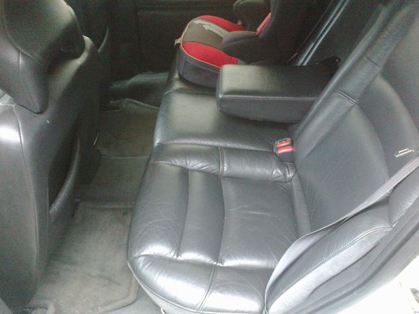 Volant a sedačky v mé V70 jsou kompletně čalouněné černou kůží, z čehož jsem měl zpočátku trošku obavy. Že prej to v zimě studí a v létě pálí, takže jsou kožené sedačky vlastně celoročně úplně nepoužitelné. Pravda je to jen částečně; jasně, oproti textilním/polokoženým sedačkám to po usednutí do vymrzlého auta opravdu trochu studí, což ale během půl minuty vyřeší vyhřívání. A ano, v létě to pálí, hlavně když auto stojí proti slunci. Pálí to ale jen na holé tělo (když se mi při nasedání ohrne tričko a vylezou mi záda nebo kus prdele), jinak se ale žádné drama podkreslené smradem spáleného masa nekoná, přes oblečení nic nepálí. Naopak na kožených sedačkách se mi líbí supersnadná údržba, prach se na nich nedrží a nečistoty typu cmrndance od kafe vyřeší vlhčené ubrousky. Předchozí majitel se o auto docela poctivě staral, takže ani po více než 15 letech používání není kůže nikde popraskaná, jen u řidiče je od pásu ošoupaný světlý flek. Já sedačky cca jednou za tři měsíce vyčistím a namažu nějakýma spešl extra ubrouskama od Coyota (a pak v sedačce 14 dní kloužu jako puk), jinak je to úplně bez starostí. Sedačky mají spíše gaučový charakter – jsou rozměrné a měkké, ale pohodlné a ani po hodně dlouhé jízdě z nich nic nebolí. Sedadlo řidiče je navíc elektricky nastavitelné s možností uložení tří různých nastavení. Opěradlo spolujezdce se dá sklopit dopředu, což se hodí při převozu čehokoliv rozměrného. Zadní sedadla jsou 2/3 dělená, jednotlivé sedáky a opěradla se dají různě sklápět nebo úplně vyndavat ven.