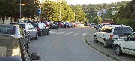 Další závadu vidím v dopravním řešení východní části, kde má být 234 bytů a 57 rodinných domů. Jediný příjezd do této nové čtvrti je z ulice Koniklecová. Výjezdy jsou ty 3 červené ovály. Každý nebohý řidič se jistě rád projede Koniklecovou. Místo, co by jel do rezidenční části přímo z hlavní ulice (červená čára), vjede do ulice (modrá kostrbatá čára) která je jednosměrná, kde je třicítka a vzhledem k zaparkovaným autům je sotva širší než 2,5m. Mine na horizontu a v zatáčce umístěný přechod: