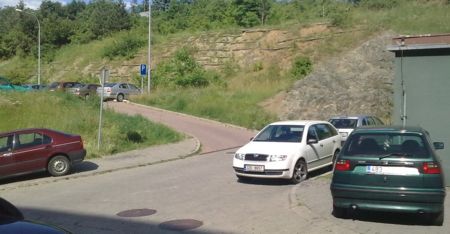 krátká rovinka v nejhorším případě ještě retardér k parkovišti, pravá 6,levá 6, kopec a horizont: