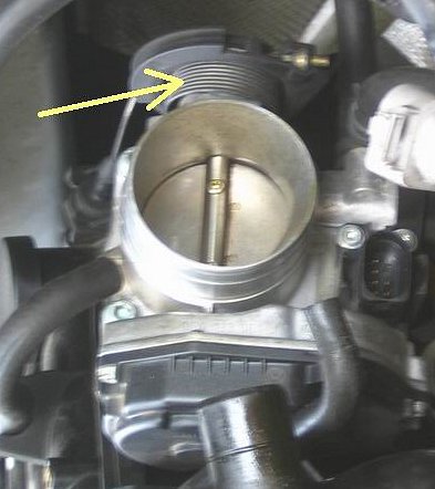 Pokud je airbox někde dále od motoru, sledujeme hadici vedoucí z airboxu. Na jejím konci bude nějaký obyčejně plastový mezikus nasazený na škrtící klapku. Ten je třeba sejmout.