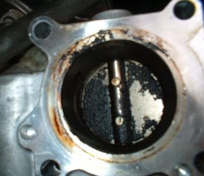 Škrtící klapka není bezproblémový komponent. Nejčastější chybou je právě zanesení škrtící klapky, viz obrázek: