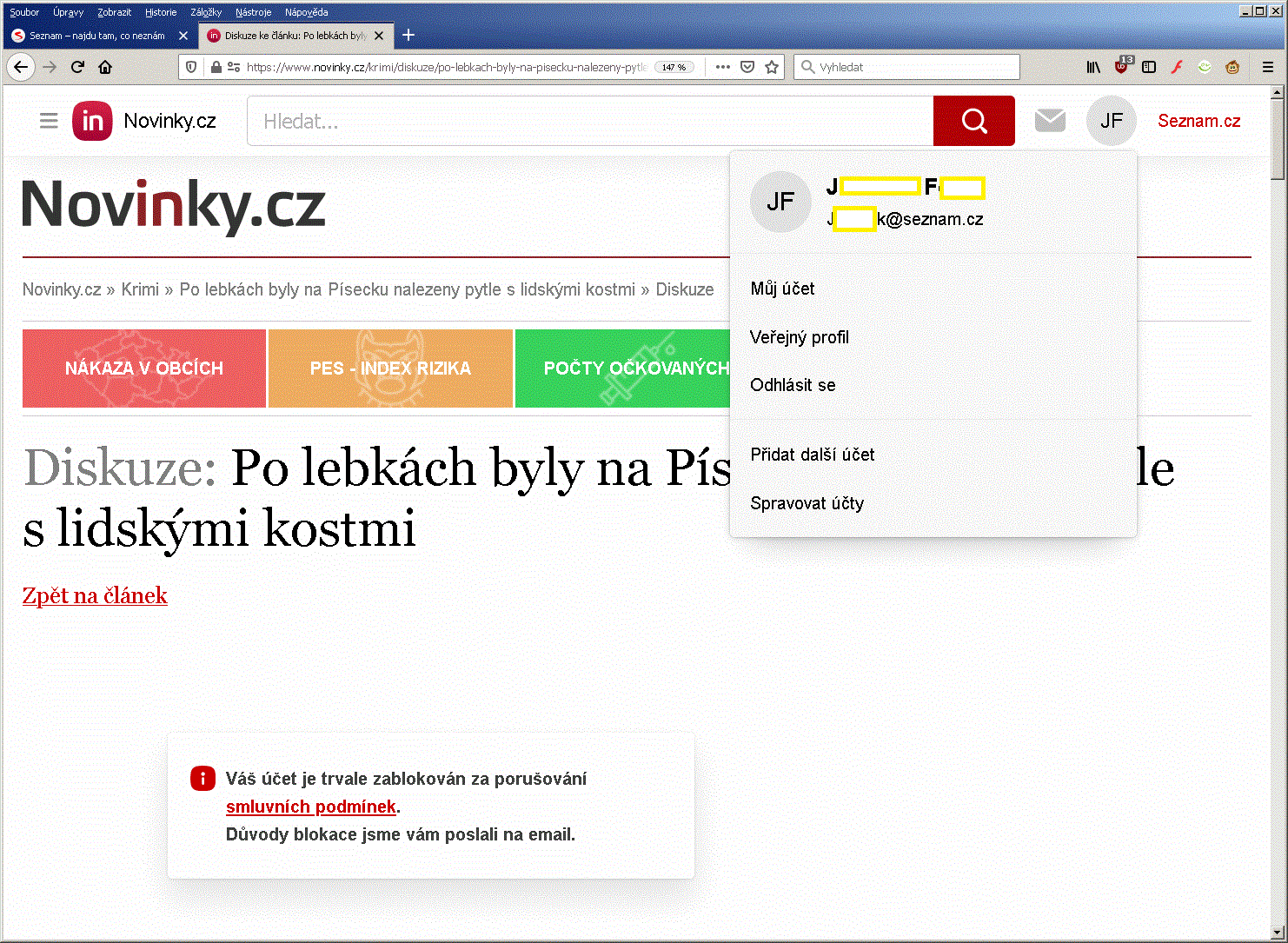 9. Kdysi jsem na Seznamu používal mail a psal do diskusí asi tak od roku 2000. Nikdy jsem žádný ban nedostal. Kdysi platilo, že ten kdo píše slušně, není trestán. Pak jim jebnulo a dostal jsem doživotní blokaci bez jakéhokoliv upozornění a bez jakéhokoliv uvedení, za co to bylo. Mail jsem si udělal jinde a kašlu na ně!