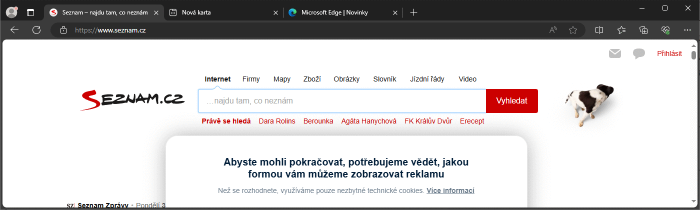 1. Prave tohle mi zrejme diky Brave Seznam nezobrazuje.