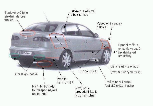 Díky tomu, že dynamika slabší čtrnáctistovky není až tak špatná, jednašestkovou Octavii první generace s tím nejen doženete, ale i předženete. Nový zmrdipaskvil v podobě dvojkové řady s motorem 1.4-16V bude Cordoba deklasovat zcela s přehledem, protože nový produkt z Boleslavi (?) je skoro o dva metráky těžší. Pokud bych se měl rozhodovat mezi nějakou výprodejovou Octavií I s benzínovou šestnáctistovkou a Cordobou s 1.4, volil bych Cordobu. Jednak je levnější, hlavně ale hezčí a její prostorové řešení je lepší.