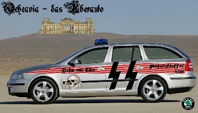 Policie ČR si nechala za pouhých 250 tis. Kč zpracovat návrh na nový marking policejních vozidel. Až zkoumavý zrak bystrých čtenářů serveru Novinky.cz odhalil, že na boku policejních vozidel jsou vtipně zakomponované dva blesky. Jak reaguje Eichler na tuto náckovskou provokaci? On mlčí!