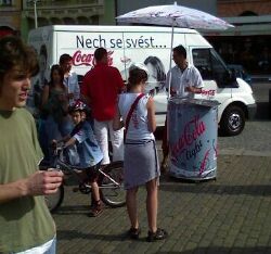 Michal David. Kýčař, autor hudby, textů, několika muzikálů, člověk s neskutečně širokým záběrem počínaje spartakiádním hitem Poupata a konče zhýralým kapitalismem zavánějícím Pijeme kolu, se stal opěrným sloupem Královy promo akce. Zladko Vladčik si dělá prdel, Michal David to myslí vážně, jeho vystoupení nejsou recesí, jak si mnoho lidí dosud myslí. Obtloustlý mužík v oranžové košili zakryl pleš baseballovou čepičkou a vystoupil na pódium. Začal hitem Pijeme kolu (přítomnost firmy Coca-Cola tím přestala být náhodná), pokračoval přes My máme prima rodiče, kterým roztančil uklízečku od nás z práce, až předváděla až neskutečně dynamické pohybové kreace. Vystoupení gradovalo famózní popovou hymnou Nonstop. Při něm se frontman zadýchal, přece jen už není mladý svazák, a musel se dá dohromady u ploužáku z kultovního filmu Discopříběh. Frontman nebyl k utahání: neustále chrlil další hity a prokládal je informacemi o muzikálech, které chystal, chystá a bude chystat. Například že Lukáš Vaculík konečně podepsal smlouvu a bude vystupovat opět společně se Sagvanem Tofim, čmíž vytvoří duo Luki a Tofi. Místy jsem nechápal, o čem mluví. K tomu občas přihodil nějakou třeskutou hlášku, jako třeba „máte tady krásný holky“ a „máte tady dobrý pivo“. Nakonec ukázal někam do dáli a prohlásil, že tam stojí sólistka, co s ním celou dobu zpívala, že ji slyšel.
