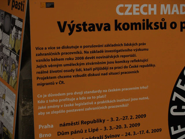 Na náměstí a v přilehlé ulici, pojmenované příhodně po zemi, která se nejvíc proslavila tím, že velmi originálním způsobem zanikla, se konal jakýsi pokus o happening, k němuž se porůznu přifařily všemožné levičácké organisace, což mne nepřekvapilo, jsou to jen další výhonky neoficiálního levičáckého eurohnutí za neoprávněné výhody, mezi nimiž asi hrála prim instituce formou melodramatického komixu poukazující na to, jak v naší zemi strašně trpí chudáčci přistěhovalci z východu (nejen, třeba i z jihu), jak je hrozné, že neznáme kulturu a zvyky Alžířanů a jak týrají je i naše spoluobčany přistěhovalci ze západu (konkrétně z Británie).
