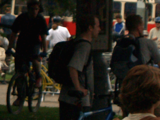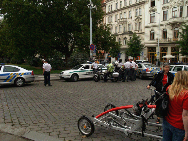 Nebudu zde sepisovat, na jaké další stánky se dalo narazit, pochopitelně si bylo možné i pronajmout kolo, koupit slušivý barevný dres a k cyklojízdě se přidat. Něco takového by mne pochopitelně ani ve snu nenapadlo a tak jsem pátral po náměstí po dalších zajímavostech. Že cyklisté páchali už na náměstí všemožné dopravní přestupky, to nemusím nikterak zdůrazňovat, jízda po chodníku byla tím nejmenším, jízda po veřejné zeleni také nebyla zcela neobvyklým jevem.