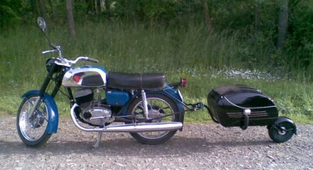 ..neboli ‚Přívěsný Avia vozík‘. Bych omezil délku už tak dlouhého článku, o historii a konstrukci pávu si přečtěte zde. Zaměřím se pouze na uživatelské zkušenosti. Předně, máte k dipozici objem 103,6 litru a nosnost 30kg, což je sen každého cestujícího motomaniaka. Pokud je vám 103 litrů málo, páva lze dovybavit dobovým příslušenstvím – zahrádkou montovanou na jeho víko, která ve vhodná pro lehké a objemné předměty (spacáky, karimatky apod.). Páv je uzamykatelný, což oceníte třeba v horku při procházce po městě, kdy do něj můžete odložit vy i váš batůžek své přilby. Při jízdě v sebevětším lijáku se dovnitř voda nedostane, věci prostě máte v suchu. Zatím samá pozitiva – nebojte, bude hůř. Předně pořizovací cena – ve slušném stavu za něj dáte i přes 10k, jste-li svářeč, klempíř a lakýrník v jedné osobě, ušetříte při nákupu, ale bude vás to stát pár desítek hodin práce. Pokud nemáte hluboko do trezoru, dá se koupit dokonale vypadající laminátová replika – musel jsem si na ni poklepat prstem, abych uvěřil, že to fakt není plech – za nějakých 18k.