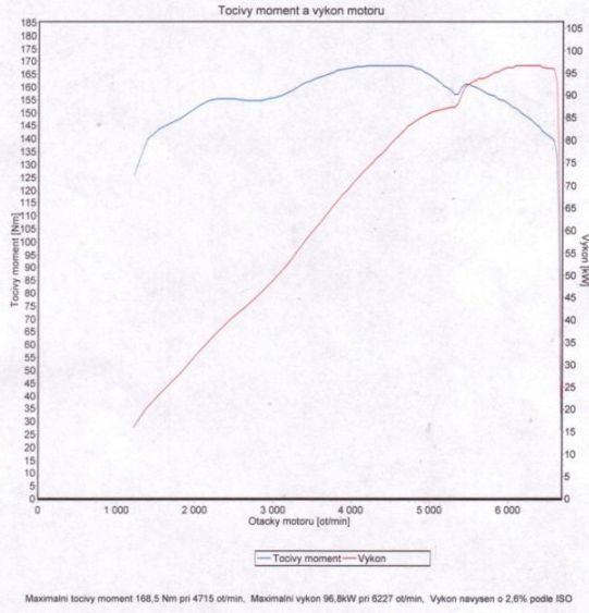 Je tam mimo jiné vidět pěkný výkonový vzrůst na hranici 5000/min, kdy dojde k přepnutí klapek v sacím potrubí a je to při jízdě cítit, jako takové pěkné nakopnutí. Samotný motor se jinak projevuje vcelku kultivovaně, subjektivně je uvnitř nejvíc slyšet kolem 4000 ot., ale není to nic hrozného pak už o něm ve vysokých  rychlostech nevíte. Rozvody jsou poháněné řemenem, který by se měl měnit každých 90000 km, ale i při jeho přetržení naštěstí nehrozí destrukce motoru. Já je měnil pár měsíců po koupi a rozvodová sada od Contitechu mě vyšla na nějakých dva a půl tisíce plus moje práce, která je k nezaplacení.